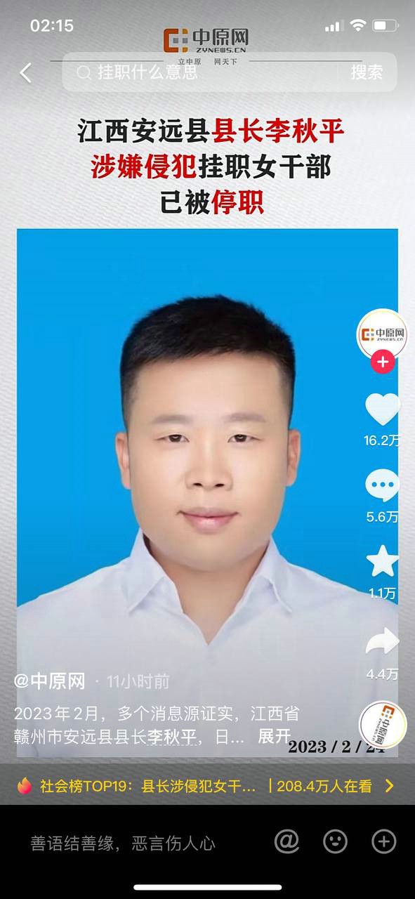 江西安远县县长【李秋平】侵犯醉酒女干部视频流出