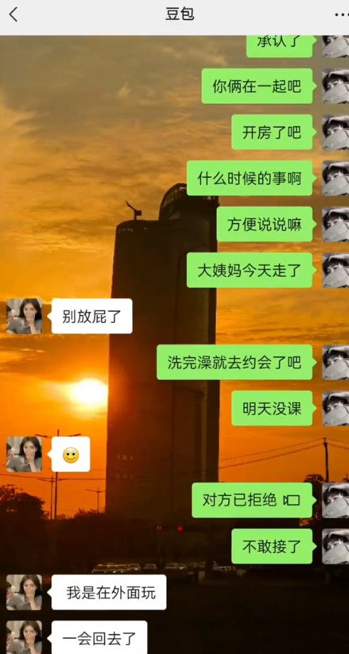 男主在外务工供女友上大学,女友胡文惠却出轨同校大四体育生孟熙 ,只因孟熙给她发了一则打飞机的视频,于是欣然前往酒店开房出轨!孟熙从此被人惯称 “飞机哥”。