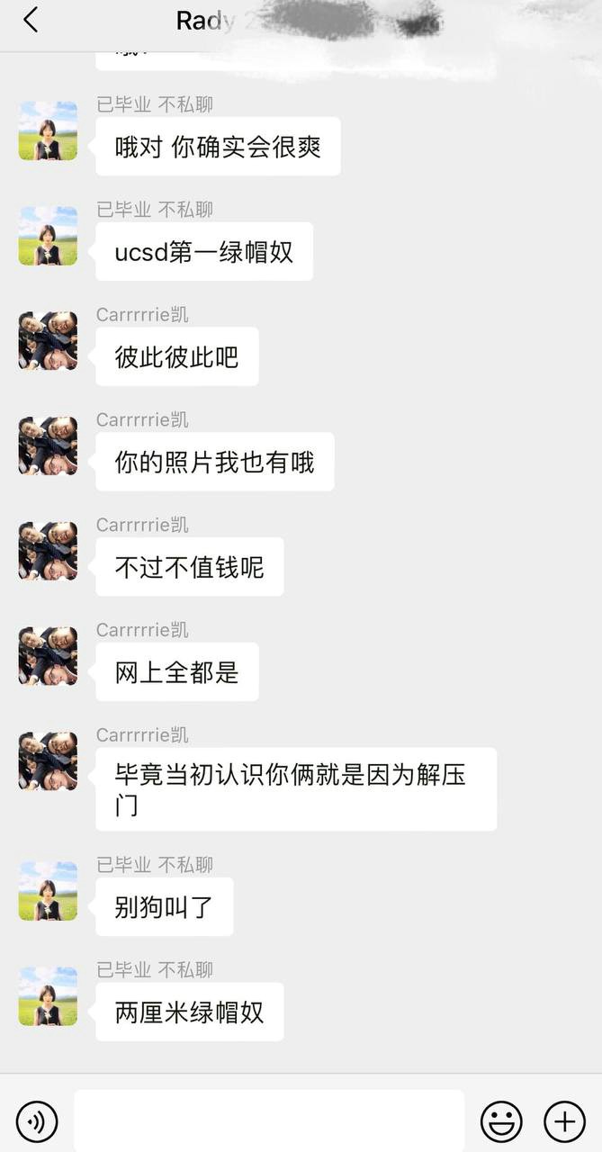 今日份的留学生圈又爆出大瓜!美国 加利福尼亚大学圣迭戈分校 绿帽男交换性伴侣最后恼羞成怒,在群里怒曝女主多段爱爱视频 该说不说真是太精彩了!!!