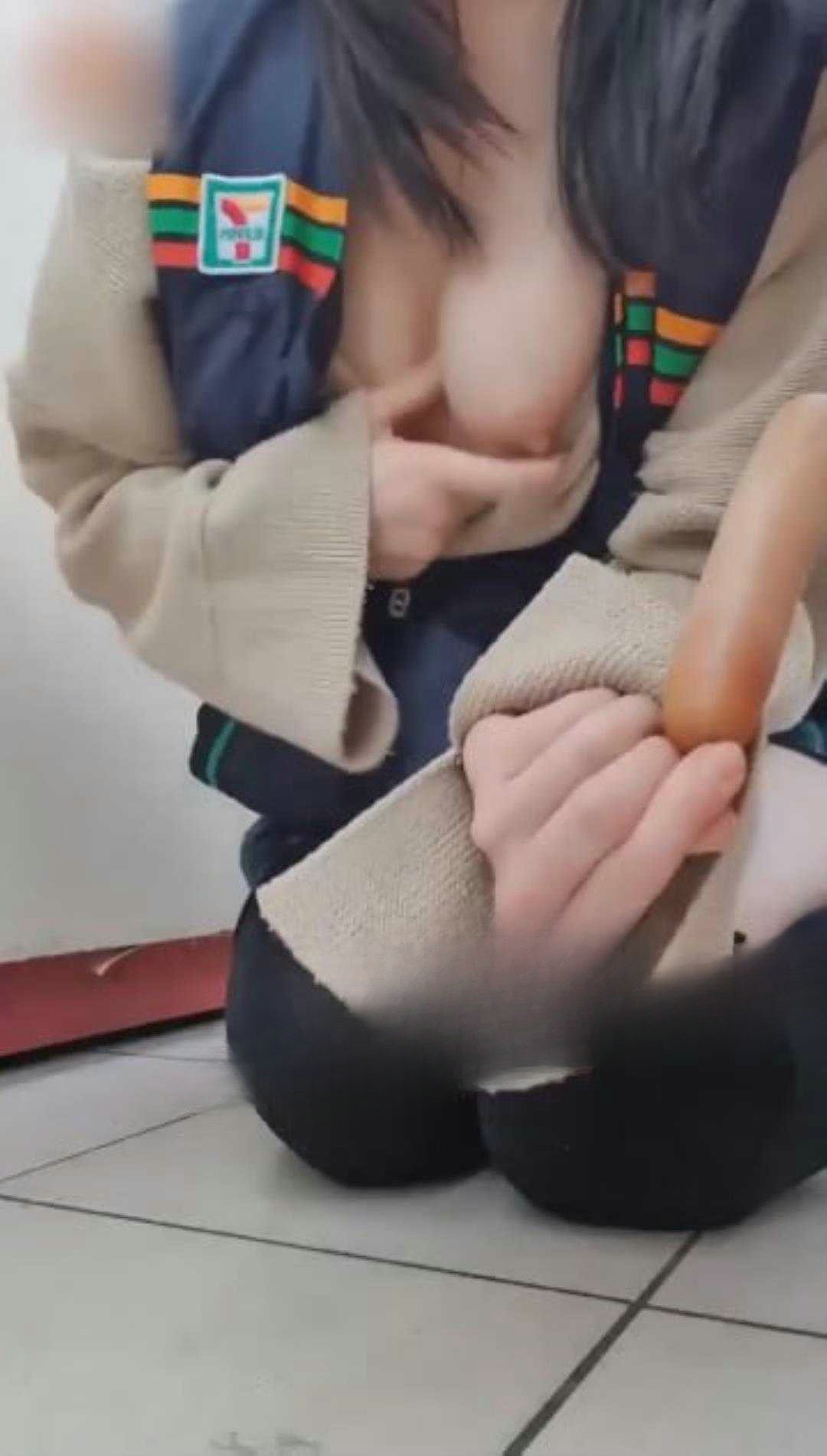 韩国超商售货员 上班期间用火腿肠进菊花 插完之后舔舔再吃下去 真会玩