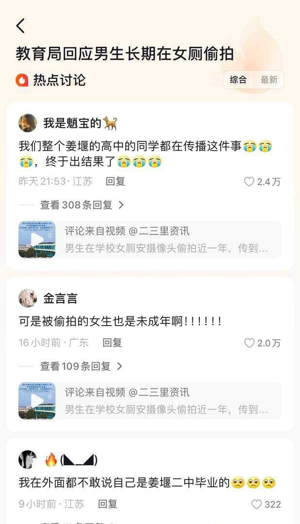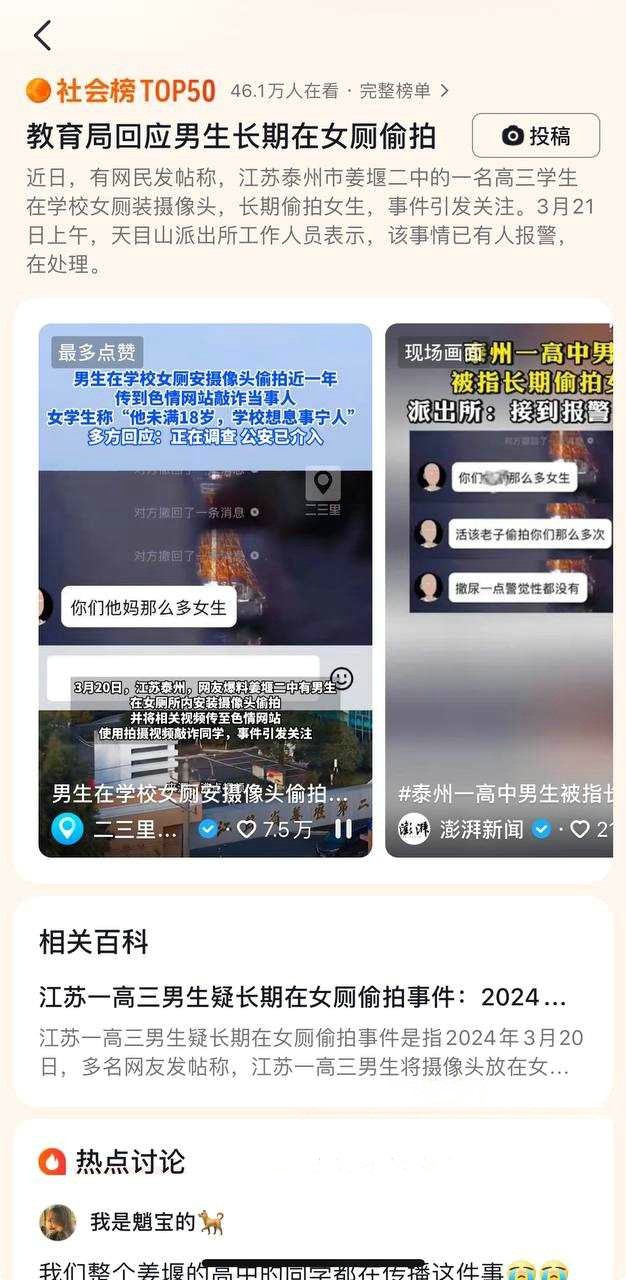 江苏泰州姜堰二中男生长期偷拍女厕被曝